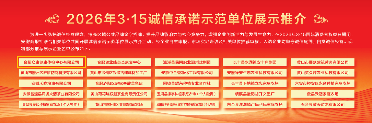 诚信为立业之基,健康系民生之本。2026年3·15国际消费者权益日期间,安徽商报社联合相关单位开展“诚信承诺示范单位展示推介&rdqu