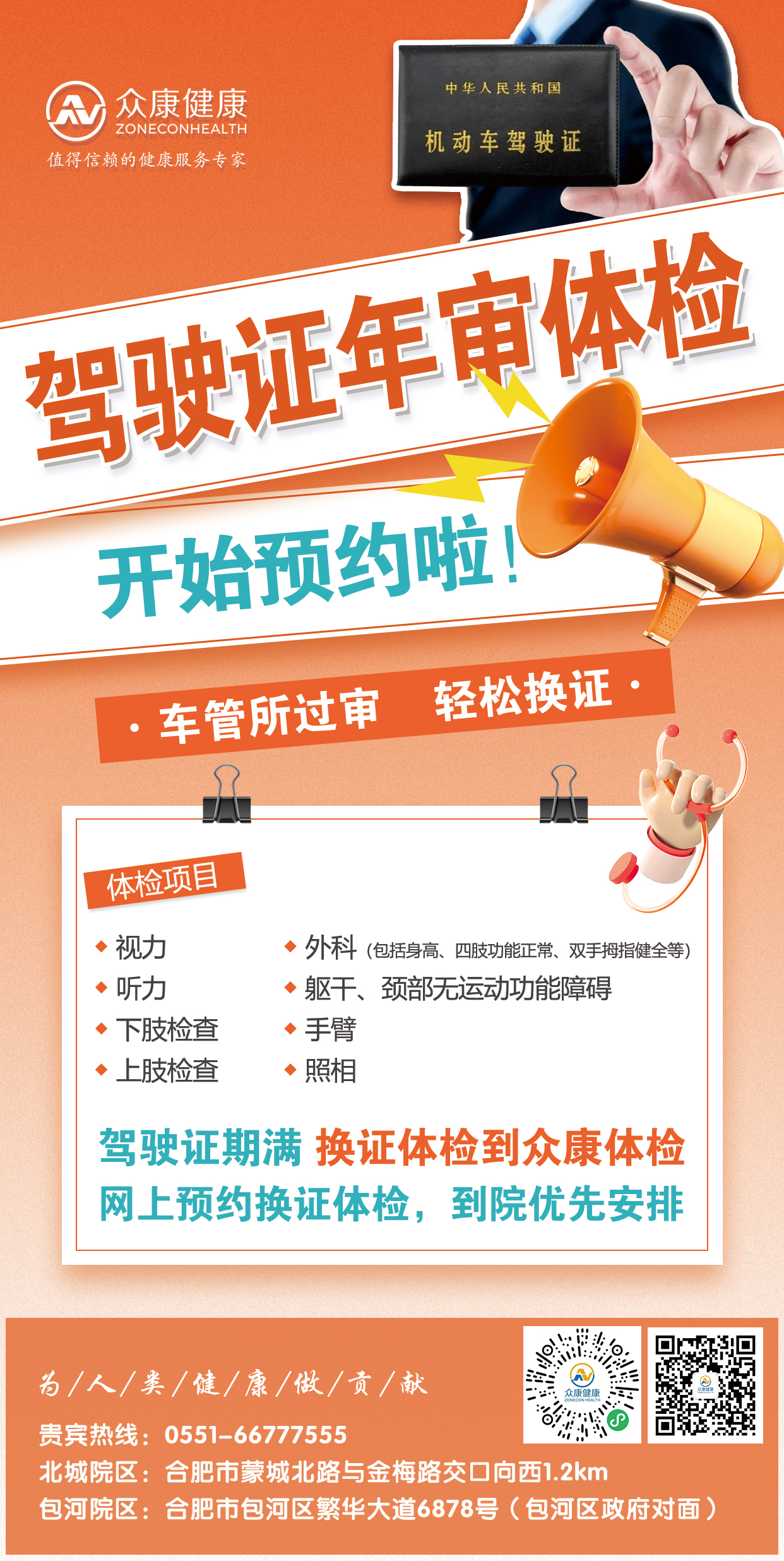 众康体检诚挚地邀请您选择我们的驾驶员换证体检服务,为您的健康驾驶保驾护航。