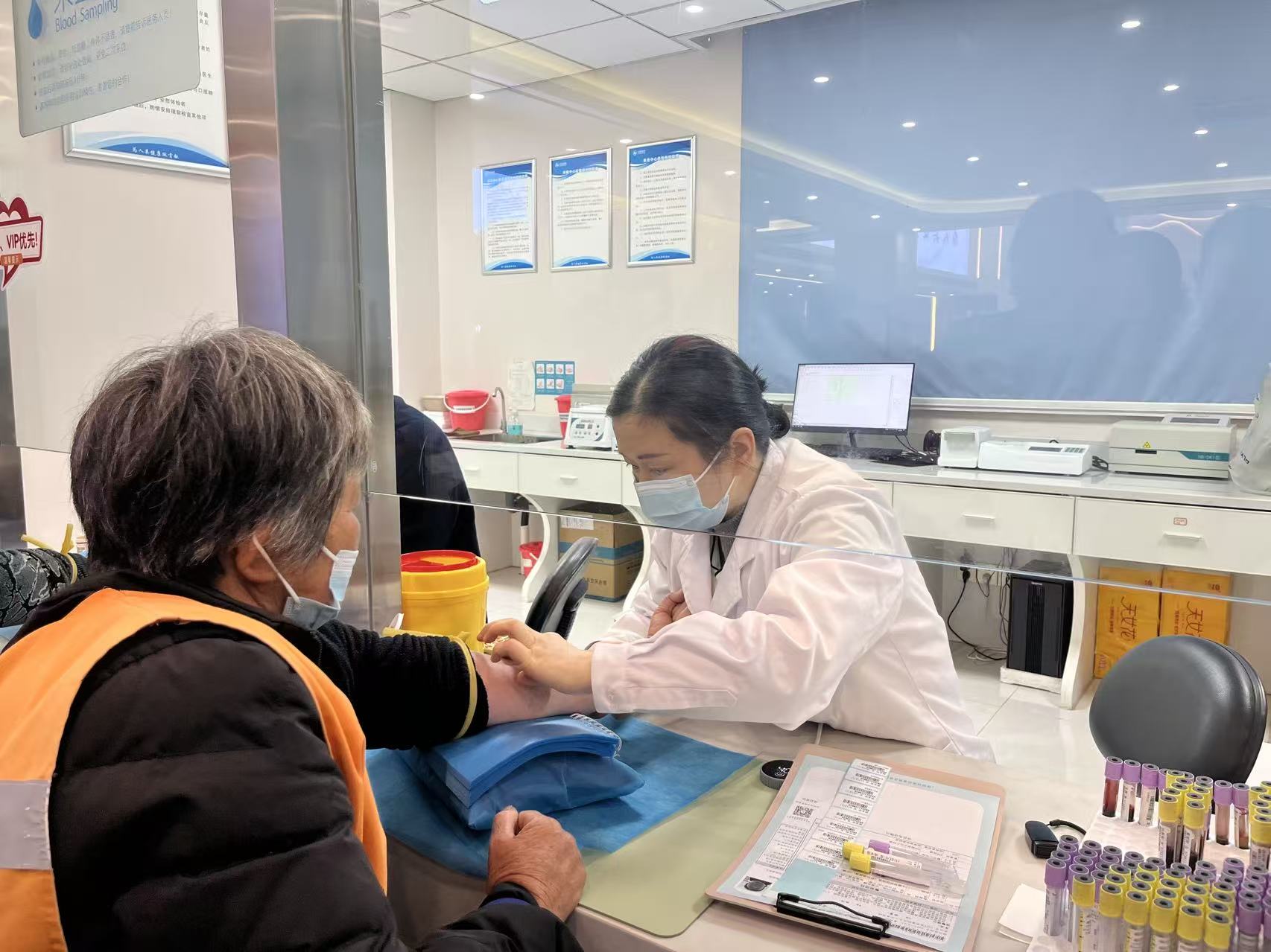 众康体检董事兼总经理汪晓锋在接受采访时介绍:“这次为环卫工人准备的体检项目共有百余项,包括DR胸片、心电图、生化检测、内外科以及肿瘤筛查等,基本覆盖了常态化基础检测项目。”为确保体检质量,众康体检在检前、检中、检后三个环节都做了精心安排:检前录入相关人员信息,检中安排专人现场指引并陪同行动不便者,检后则为每人提供精准的体检报告解读。