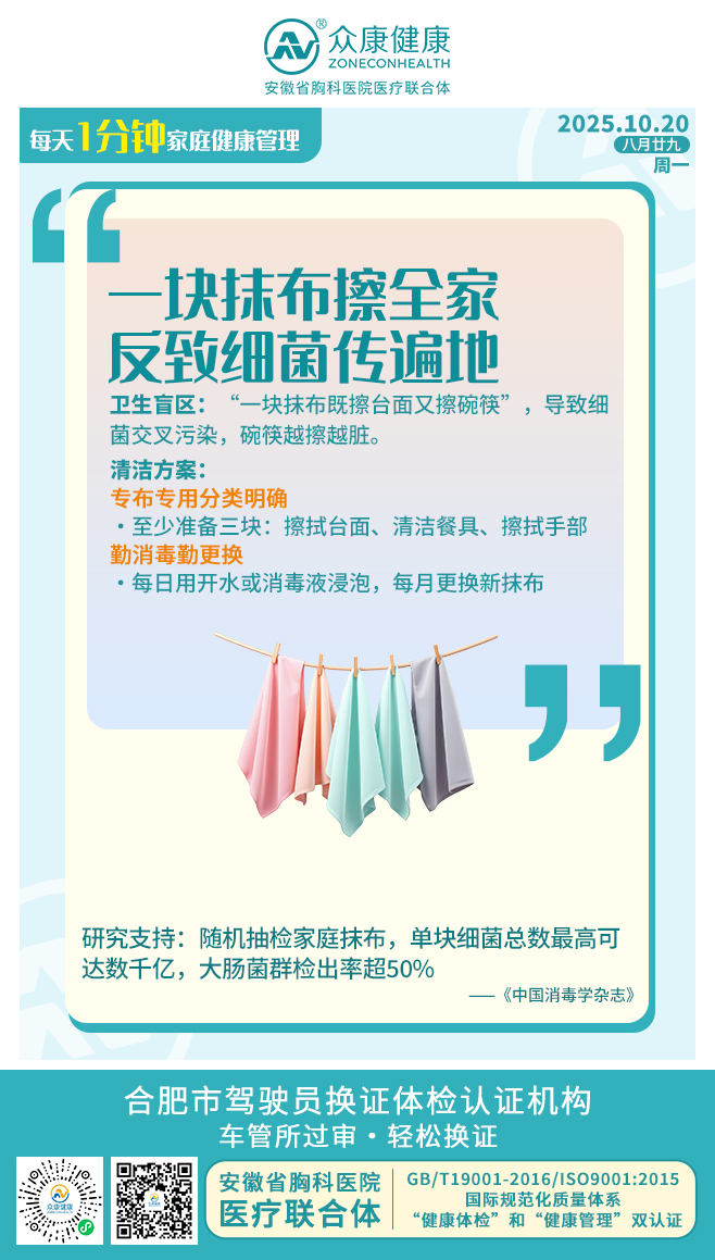一块抹布擦全家 反致细菌传遍地
